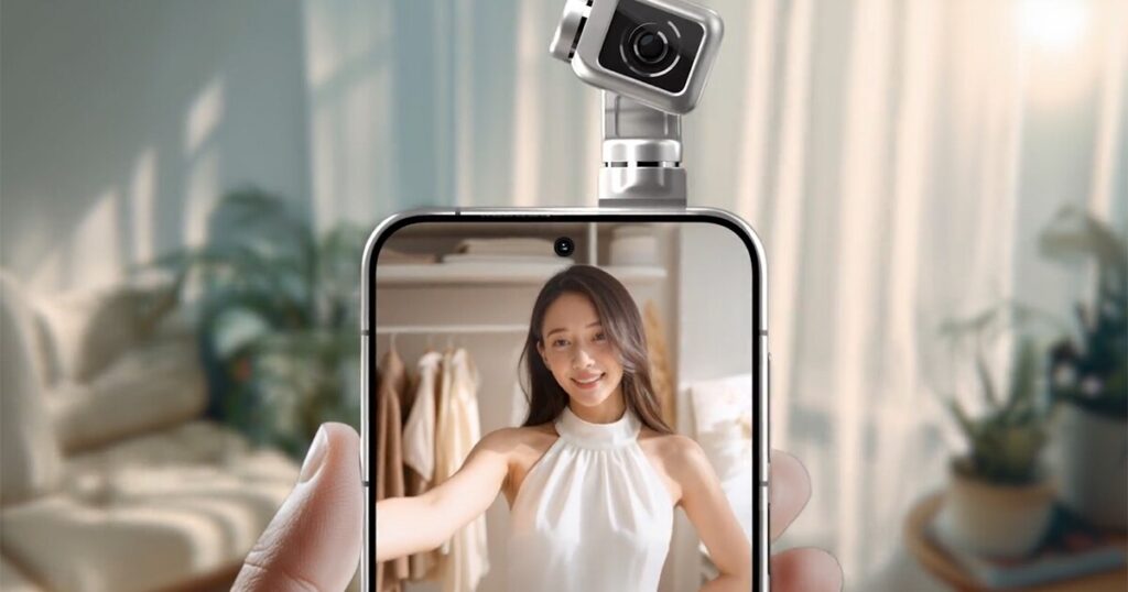 Po přivolání rameno zvedne kameru nad horní část telefonu a flexibilně ji otáčí podél několika os, takže se kolem ní může dobře rozhlížet. Je to něco jako DJI Osmo Pocket 3 který debutoval před několika lety, kromě toho, že místo rukojeti je telefon.